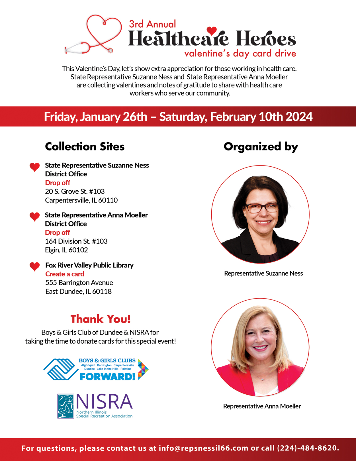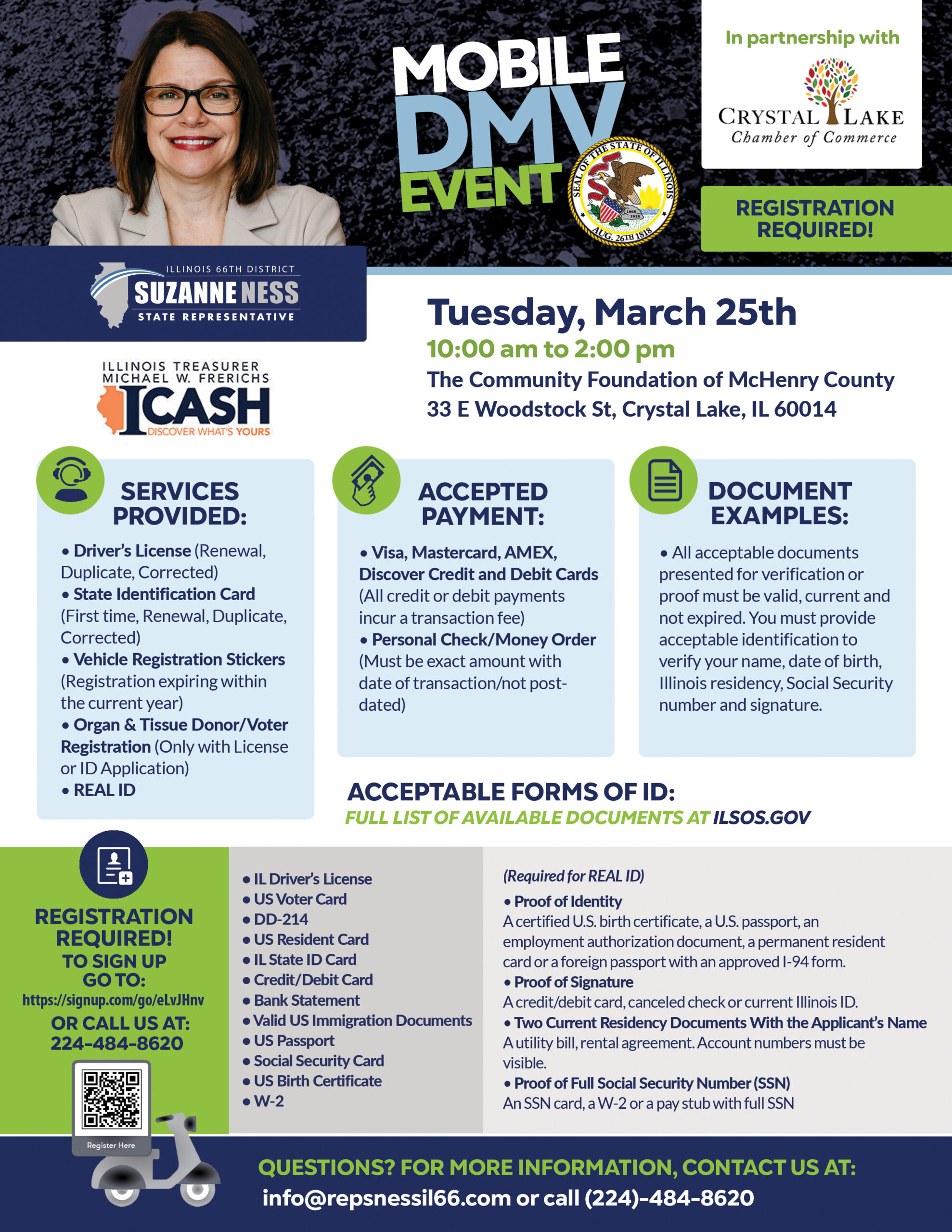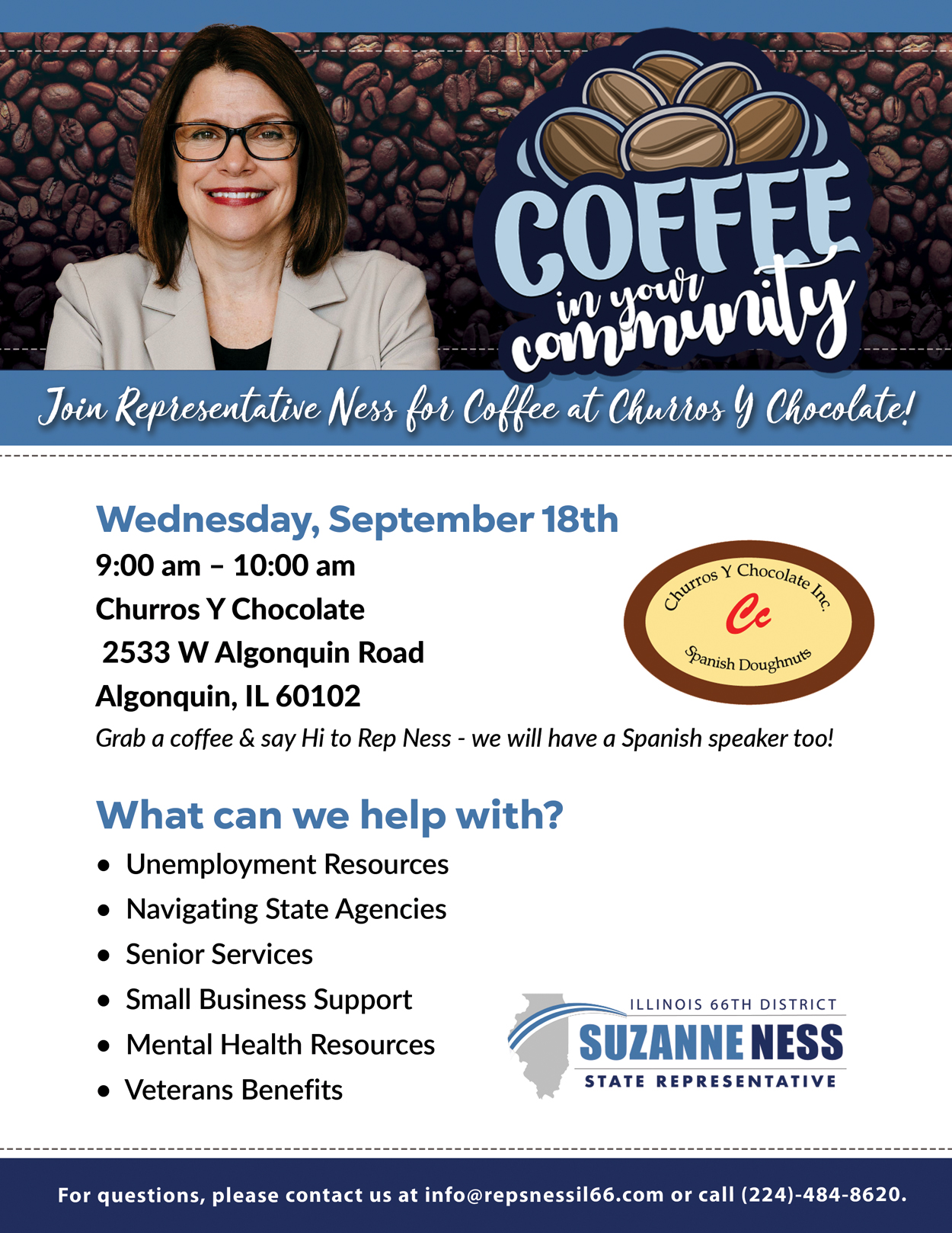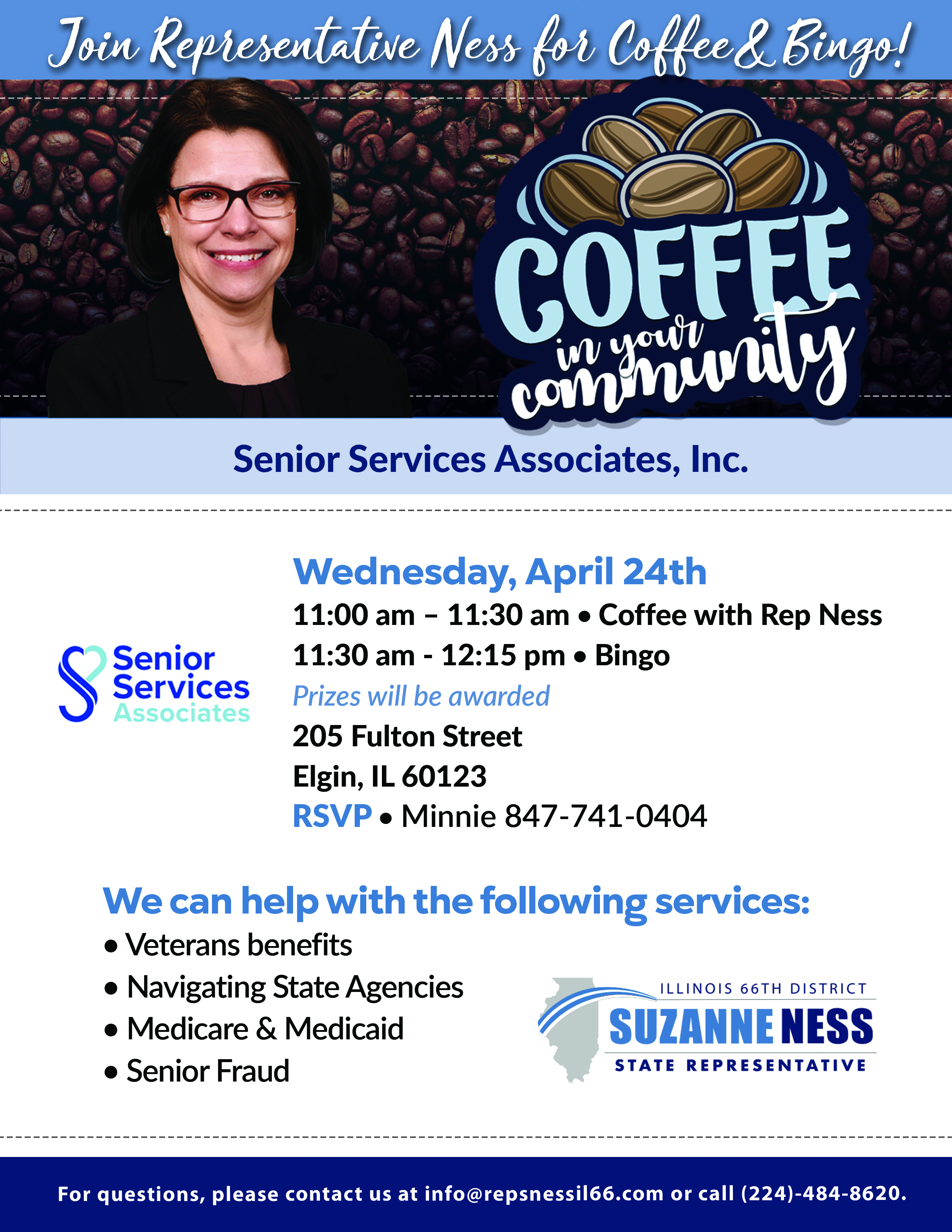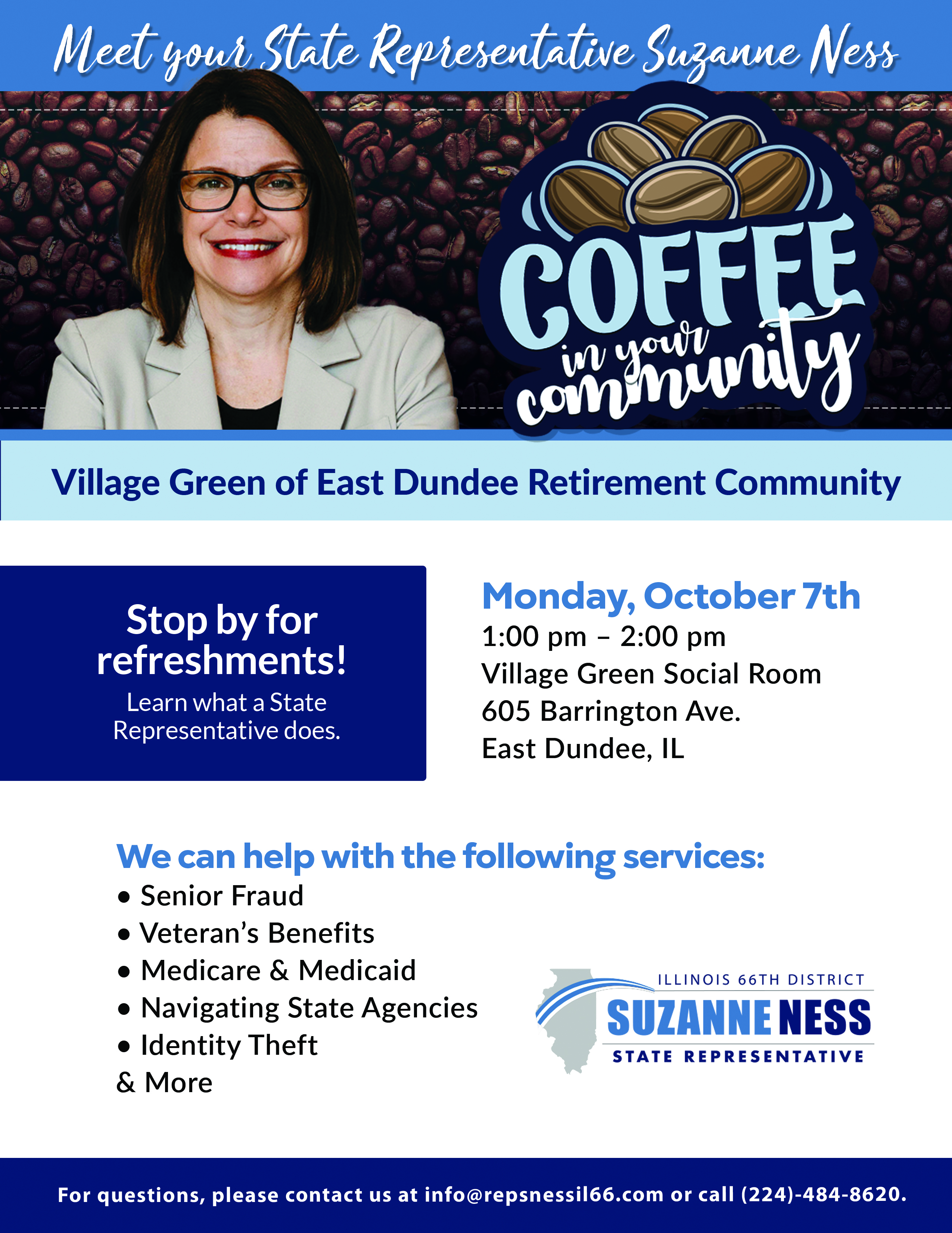 Stop by the Algonquin Area Public Library District on April 6th from 10:00 AM to 12:00 PM to connect with Representative Suzanne Ness and receive the personalized assistance you deserve — no appointment required.