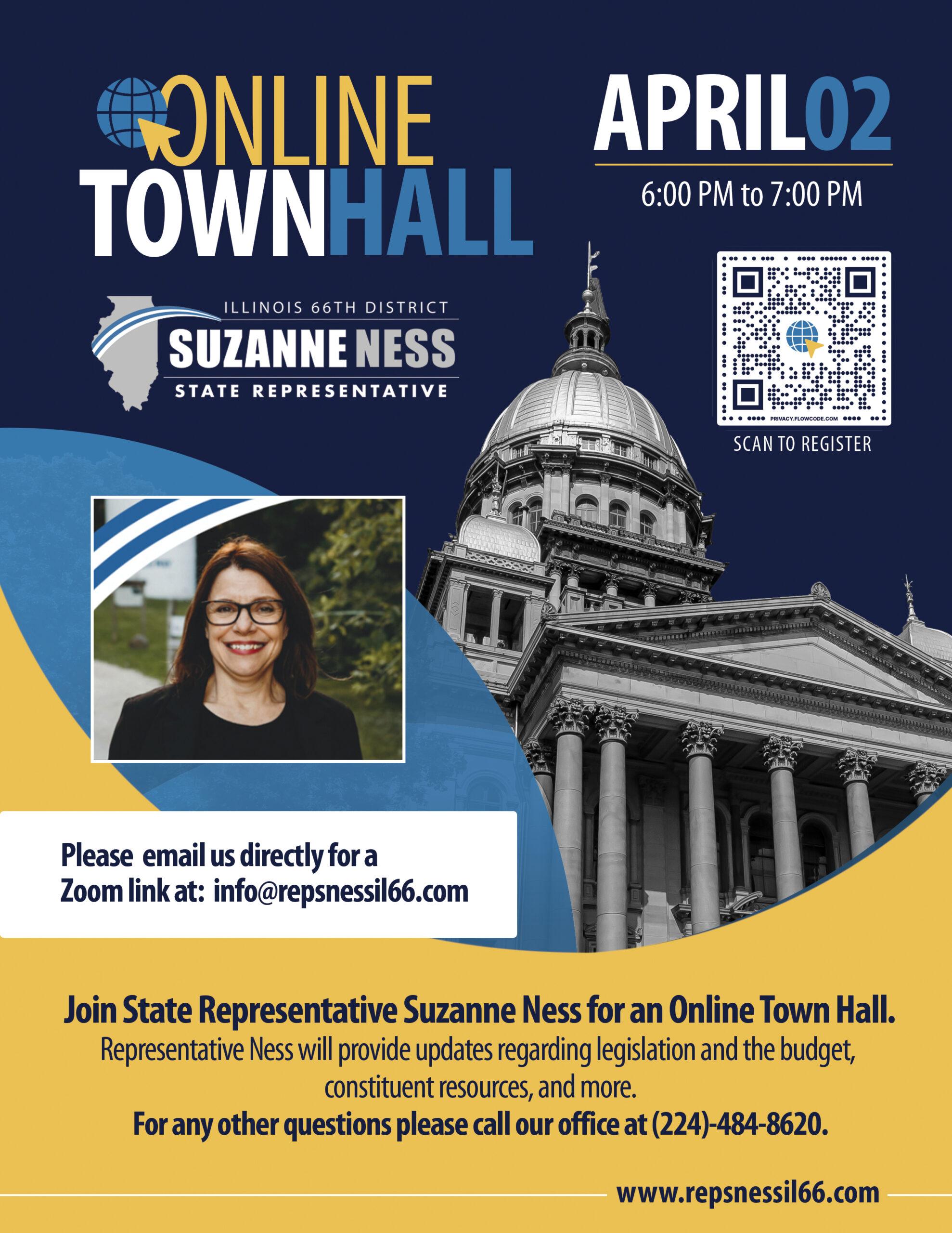 On March 3, from 6:00 PM to 7:00 PM, Rep. Ness is opening the virtual doors for an Online Town Hall to keep constituents informed and empowered.